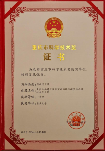 20255年8月28日上午,重庆市科技创新大会在重庆渝州宾馆隆重召开。由重庆大学牵头,重庆大学土木工程学院教授、重庆市绿色建筑与建筑产业化协会副会长丁勇作为第一完成人的“大型公共建筑健康室内环境低碳营造关键技术及应用”喜获2024年度重庆市科学技术进步奖一等奖。项目团队重庆大学喻伟教授、李百战教授、罗庆副教授、钱发博士作为主要完成人共同获奖。